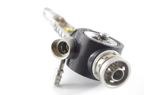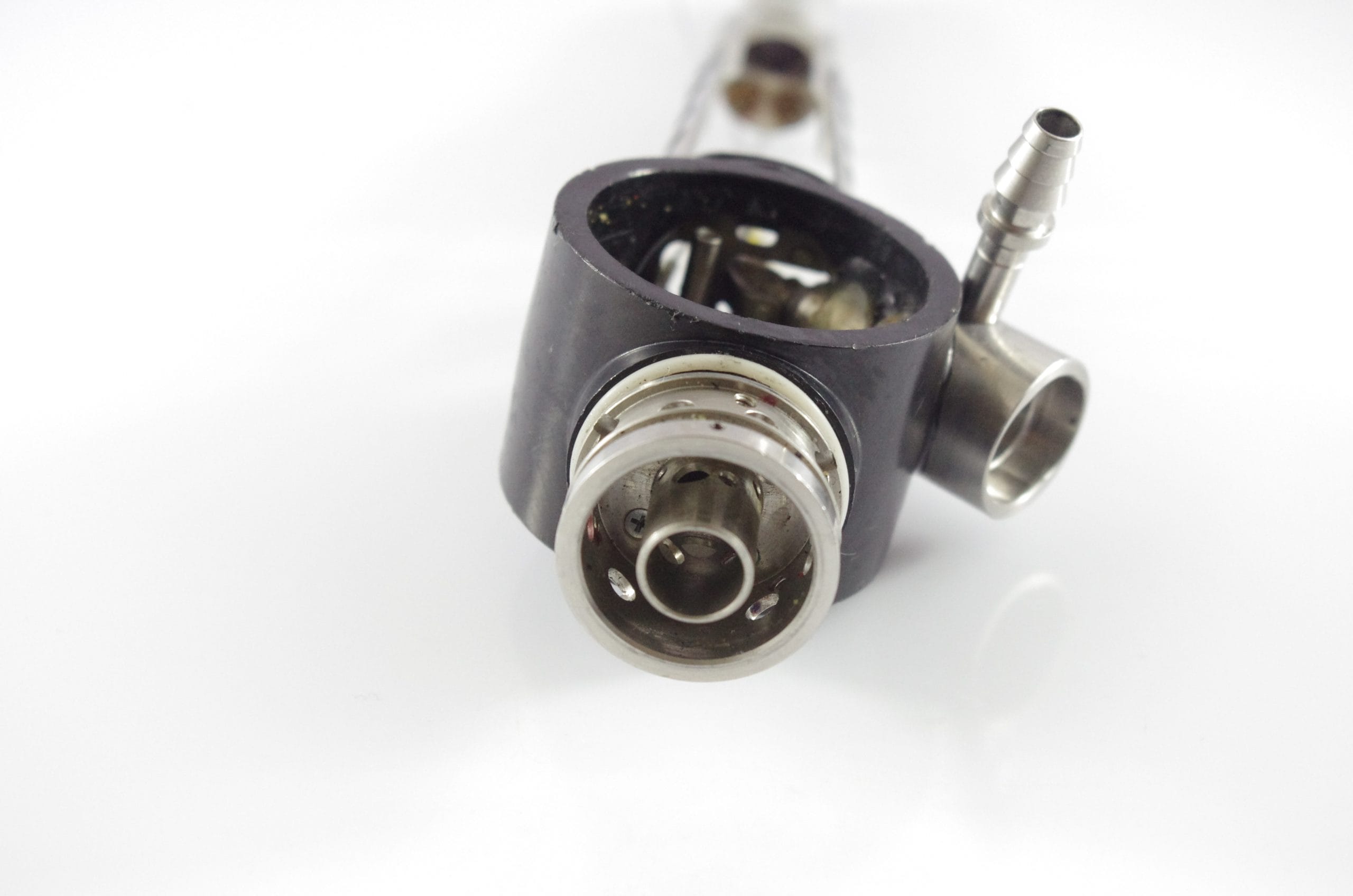 Small Diameter Basic Upper Control Body Assembly. This part includes the Upper Control Body Housing, metal Eyepiece Mount (for Applicable Models), metal Port, Buttons/ Button Piston/Button Board (for Video Models), metal Brackets (for Applicable Models) and Angulation Disk. This part does not Include the Angulation Drum.